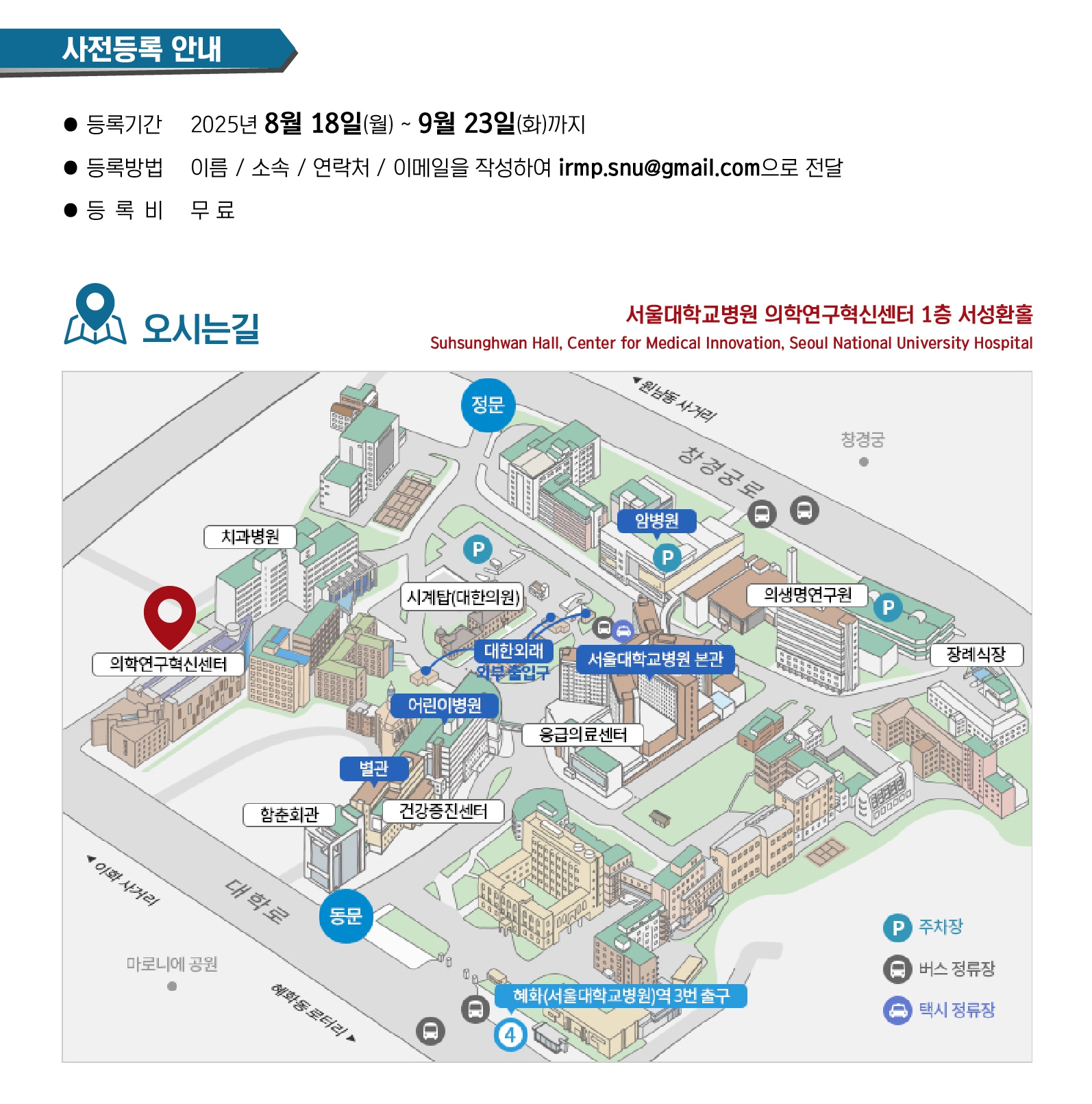 장소: 서울대학교병원 의학연구혁신센터 1층 서성환홀